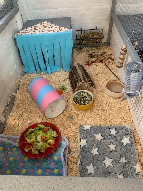 We have three runs which can house one rabbit or guinea pig each or two/ three bonded rabbits or guinea pigs from the same household.